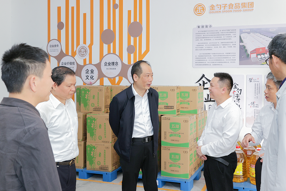 2023年4月11日下午,福建省泉州市人民政府副市長蘇耿聰一行蒞臨(lin) 金勺子食品集團泉州公司指導工作,泉州公司總經理黃東(dong) 堅、福州公司總經理黃龍金、團餐項目經理李仁宗等人熱情接待。