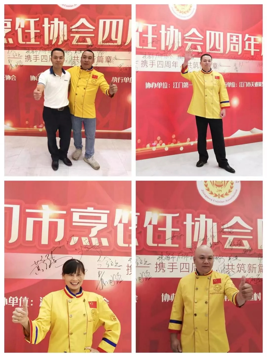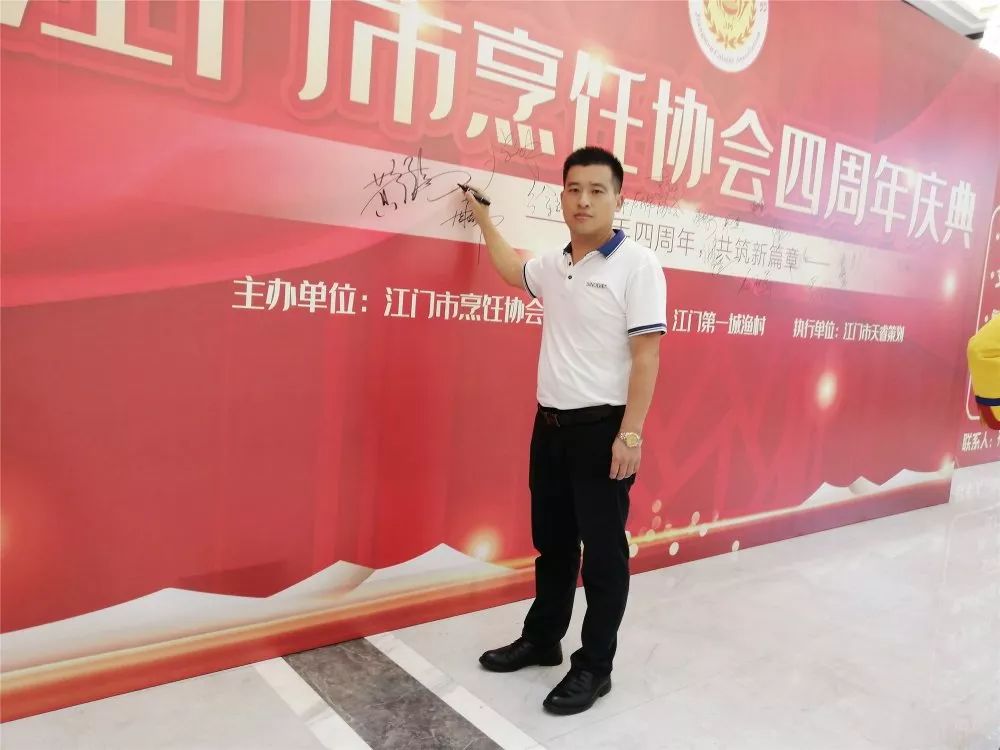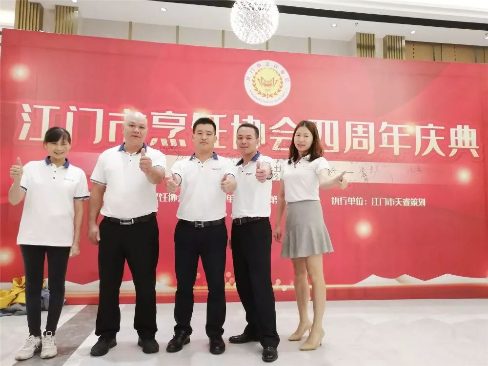 11月6日,江門市烹飪協會(hui) 四周年慶典活動在江門第一漁村國際宴會(hui) 廳舉(ju) 辦。华体汇hth体育食品集團江門分公司總經理黃文強率公司餐飲工作人員一行出席活動。