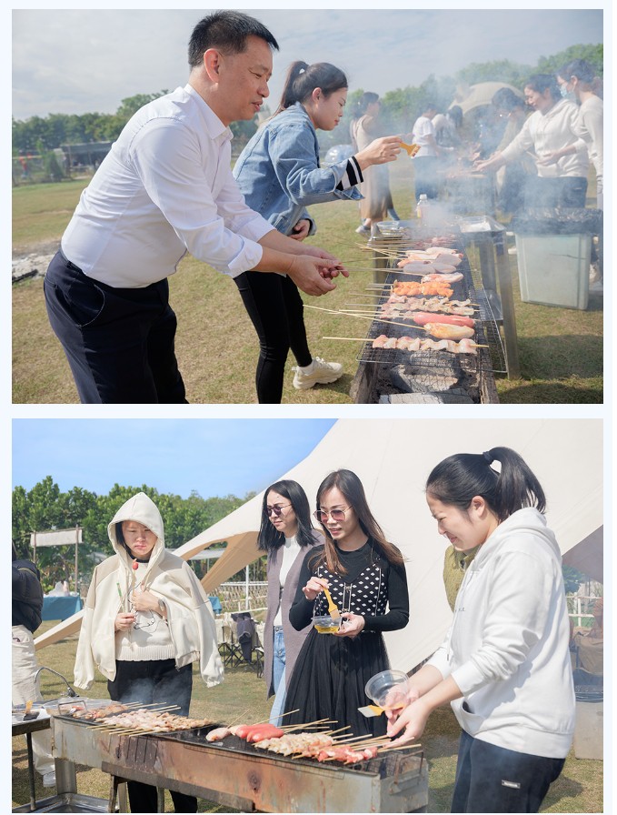 中午,我們(men) 在農(nong) 場內(nei) 自製燒烤美食、圍爐煮茶等,品嚐美味,共享美好時光。同事們(men) 相互交流,拉近彼此的距離。