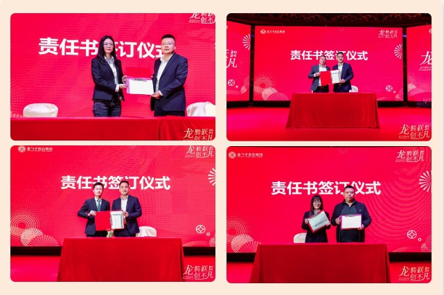 晚宴開始,集團同各職能部門、各分公司、各事業(ye) 部代表分別簽訂責任目標書(shu) ,旨在堅持“向管理要效益、向市場要潛力、向機製要活力”,齊心協力推動企業(ye) 向高質量發展。