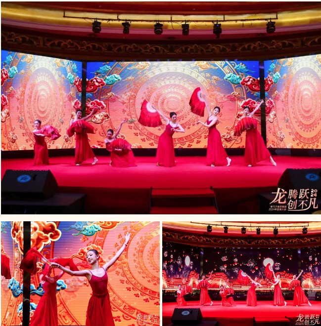 晚宴上,還設置了豐(feng) 富多彩的歌舞表演、互動遊戲,現場氣氛熱烈,一次次推向高潮,大家舉(ju) 杯相聚,最後晚宴以快樂(le) 的抽獎互動畫上了完美的句號。